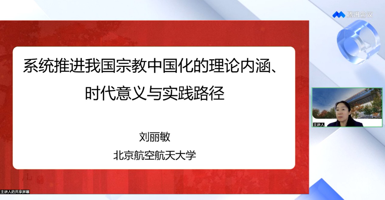刘丽敏从对“系统推进我国宗教中国化”这一重大时代命题的内涵阐释入手,通过揭示其所蕴含的历史逻辑、理论逻辑、现实逻辑,深刻分析了中国特色社会主义宗教理论的核心要义和新时代党的宗教工作的总纲。她指出,宗教中国化是涉及思想、文化、制度、社会等多个层面的复杂系统工程,系统推进我国宗教中国化不仅是国家治理体系和治理能力现代化的内在要求,更有助于彰显中华文化的包容性与生命力,进一步汇聚复兴伟业的“同心圆”。她强调,广大青年学生要深入理解并贯彻党和政府的宗教政策,正确处理民族和宗教的关系,努力学习和掌握科学文化知识,为中华民族伟大复兴贡献自己的智慧和力量。